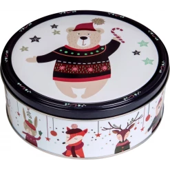 Comme une surprise de Noël, recevez l’un des trois modèles de boîtes aléatoirement. Ainsi, rangez et conservez vos gâteaux, biscuits et friandises grâce à cette boîte en métal rouge. Vous y découvrirez en l’ouvrant un assortiment de biscuit danois : nature, sablés et aux grains de sucre.