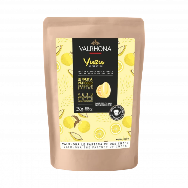 DĂ©couvrez l’agrume emblĂ©matique du Japon, le Yuzu, sous une forme totalement inĂ©dite ! Depuis 2016, la Maison experte du chocolat, Valrhona, a confectionnĂ© pour les plus fins gourmets d’entre nous, un Chocolat Inspiration Yuzu sous forme de fèves Ă la couleur et au goĂ»t 100% naturel. Ainsi, nous vous invitons Ă pâtisser ce fruit aussi facilement que des fèves de chocolat, puisqu’elles se dosent et fondent Ă la perfection pour une confection optimale de vos plus beaux desserts/plats: gâteaux, tablettes, enrobages, ganaches, glaces, sorbets, moulages, mousses, crĂ©meux, dĂ©cors…