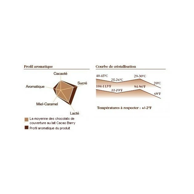 Chocolat au lait clair et fin révélant une note biscuitée subtile.