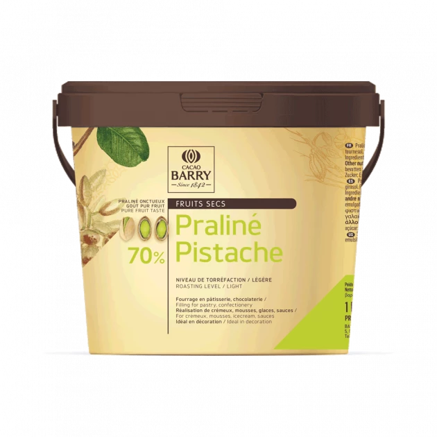 Succombez à ce Praliné Pistache, un praliné onctueux composé de Pistaches cultivées en Espagne et en Iran. Cette pâte de praliné se distingue par sa forte teneur en fruits secs (70%) et par sa couleur d’un vert intense. Le Praliné Pistache 70% Barry est un produit légèrement torréfié soulignant les arômes frais et authentiques de la pistache. Sa texture onctueuse, sa couleur verte et le pur goût du fruit rendent ce praliné parfait pour la réalisation de crémeux pistache, crèmes glacées et sauces.