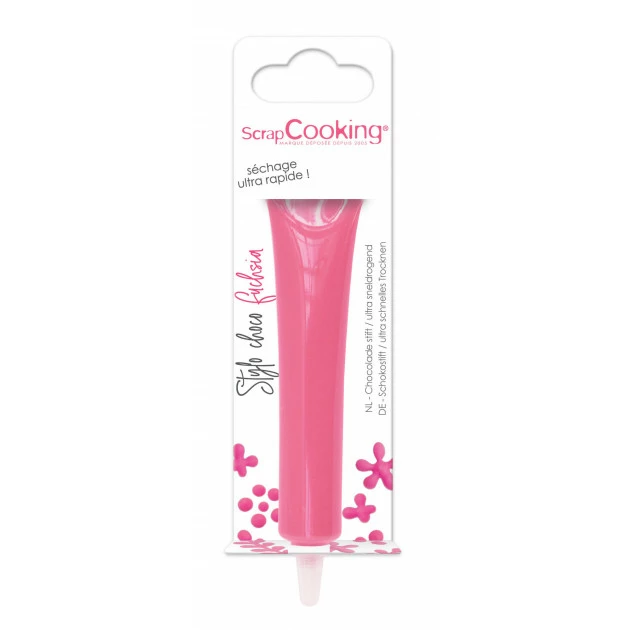 Confiez la dĂ©coration de vos gâteaux Ă un vĂ©ritable professionnel : vous. Grâce au stylo alimentaire Scrapcooking, vous pourrez rĂ©aliser vous-mĂŞme les dĂ©cors de vos gâteaux et biscuits. Ce stylo alimentaire contient du chocolat colorĂ© d’une vibrante couleur fuchsia. Cette couleur florale saura ajouter de la vie Ă vos pâtisseries. Que ce soit une simple Ă©criture de votre plus belle plume, ou un petit dessin sur des sablĂ©s, le stylo chocolat fuchsia apporte Ă la fois couleur et goĂ»t Ă vos mets.