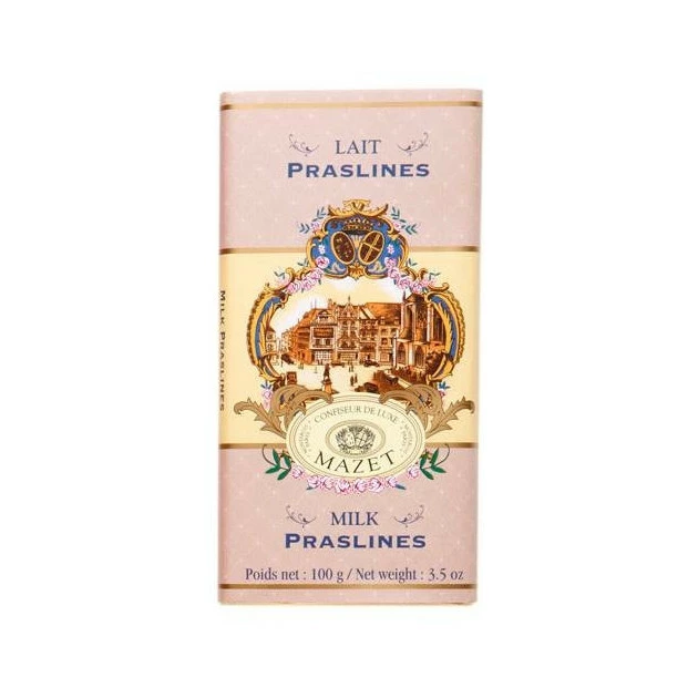 Tablette gamme Confiseur : Chocolat Lait Praslines en référence aux célèbres Praslines Mazet de Montargis